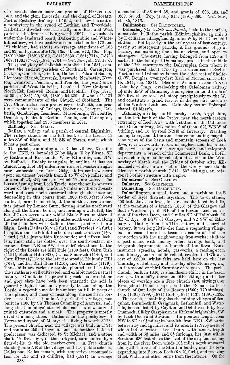 Dallachy, Dallas, Dallintober, Dalmahoy, Dalmally, Dalmarnock, Dalmary, Dalmelling, Dalmellington