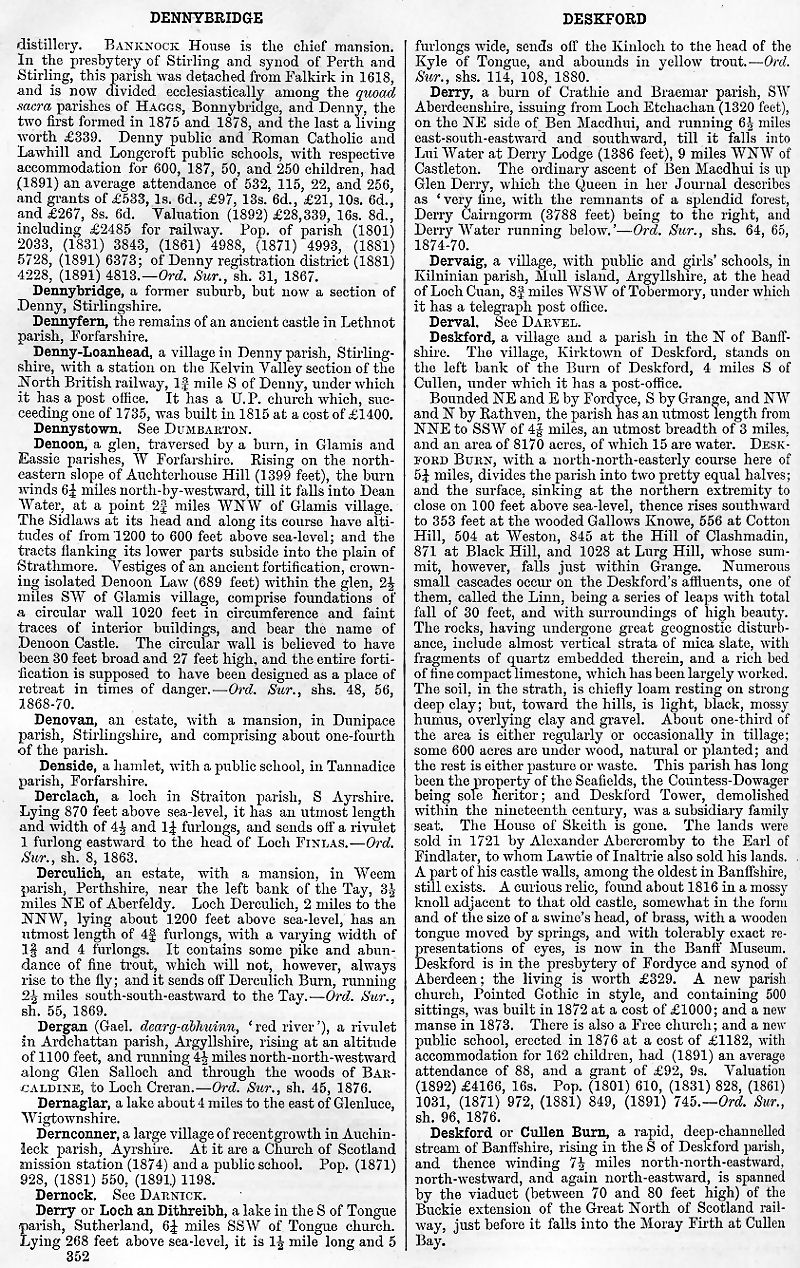 Denny-Loanhead, Dennystown, Denoon, Denovan, Denside, Derclach, Derculich,