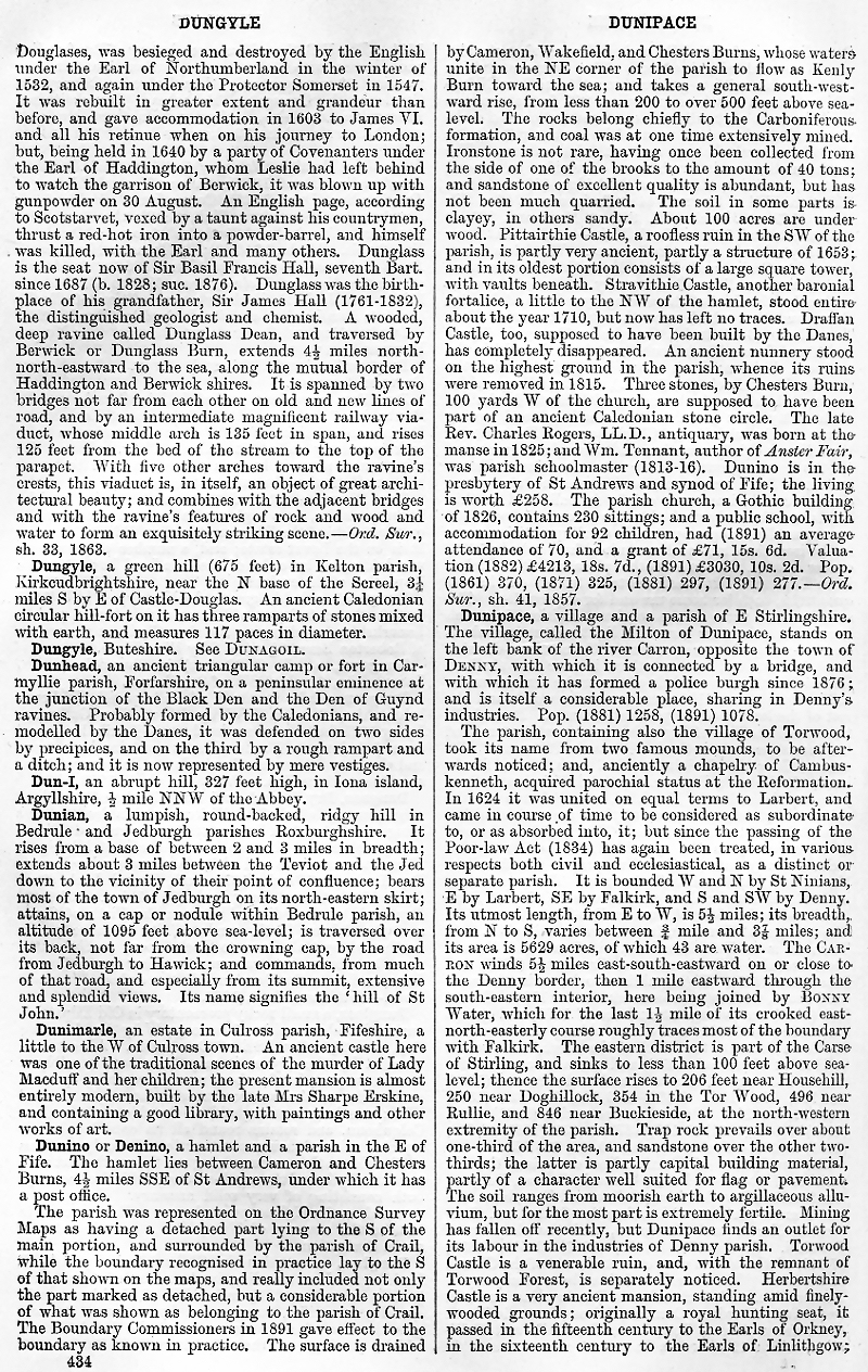 Dungyle, Dunhead, Dun-I, Dunian, Dunimarle, Dunino or Denino, Dunipace