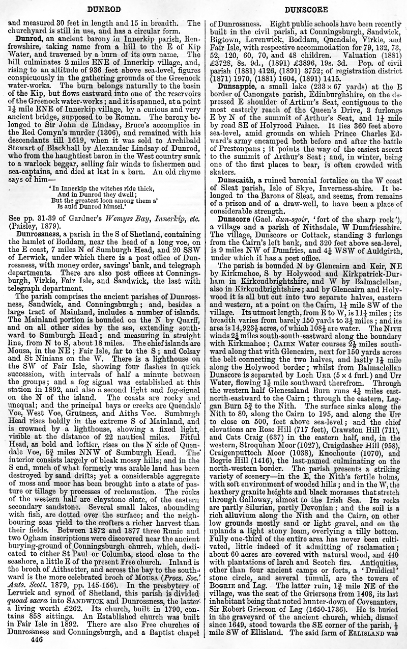 Dunrod, Dunrossness, Dunsappie, Dunscaith, Dunscore