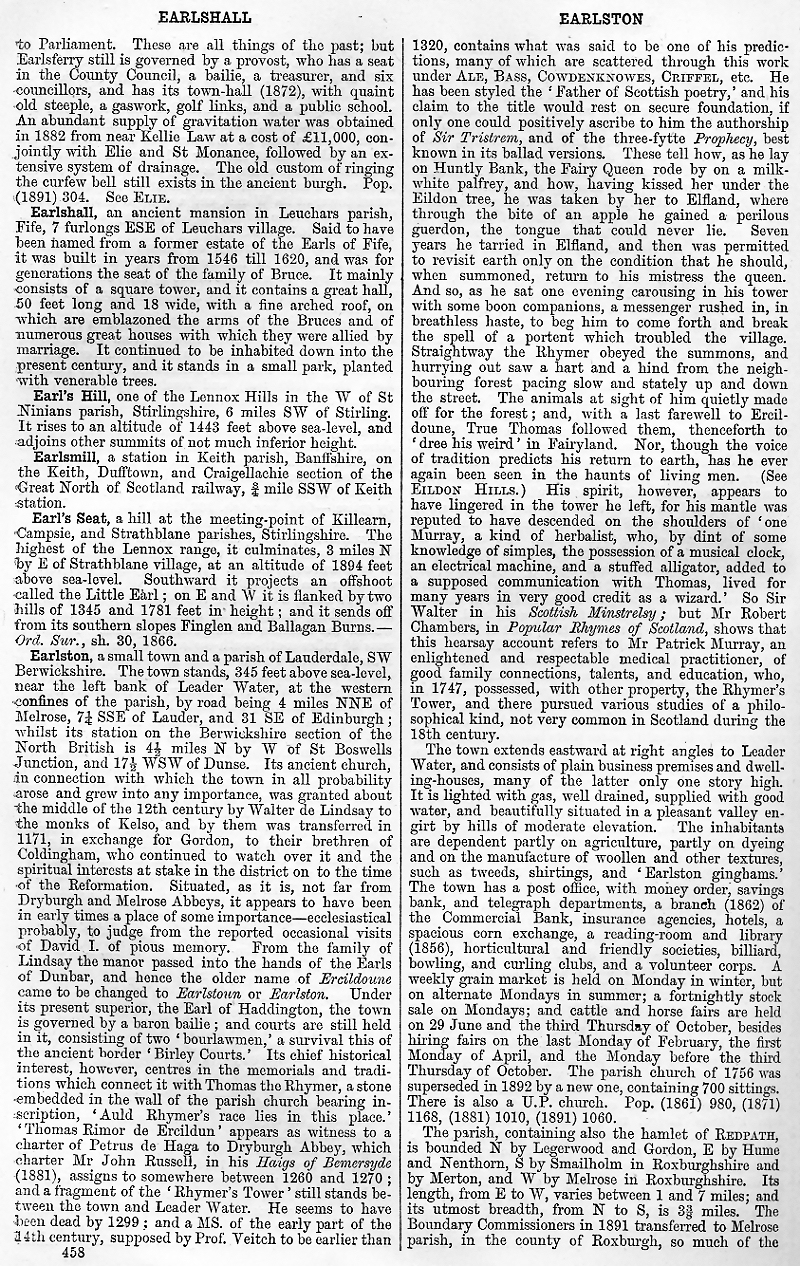 Earlshall, Earl's Hill, Earlsmill, Earl's Seat, Earlston