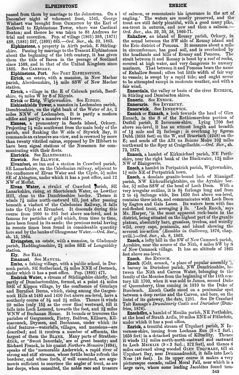 Elrick or Elrig, Elshieshields Tower, Elsness, Elsrickie, Elswick,