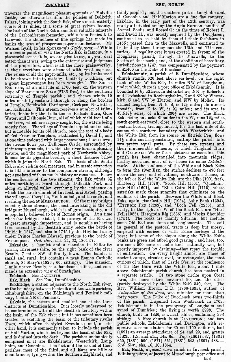Eskadale, Eskbank, Black Esk, Eskbridge, Eskdale, Eskdalemuir, North Esk