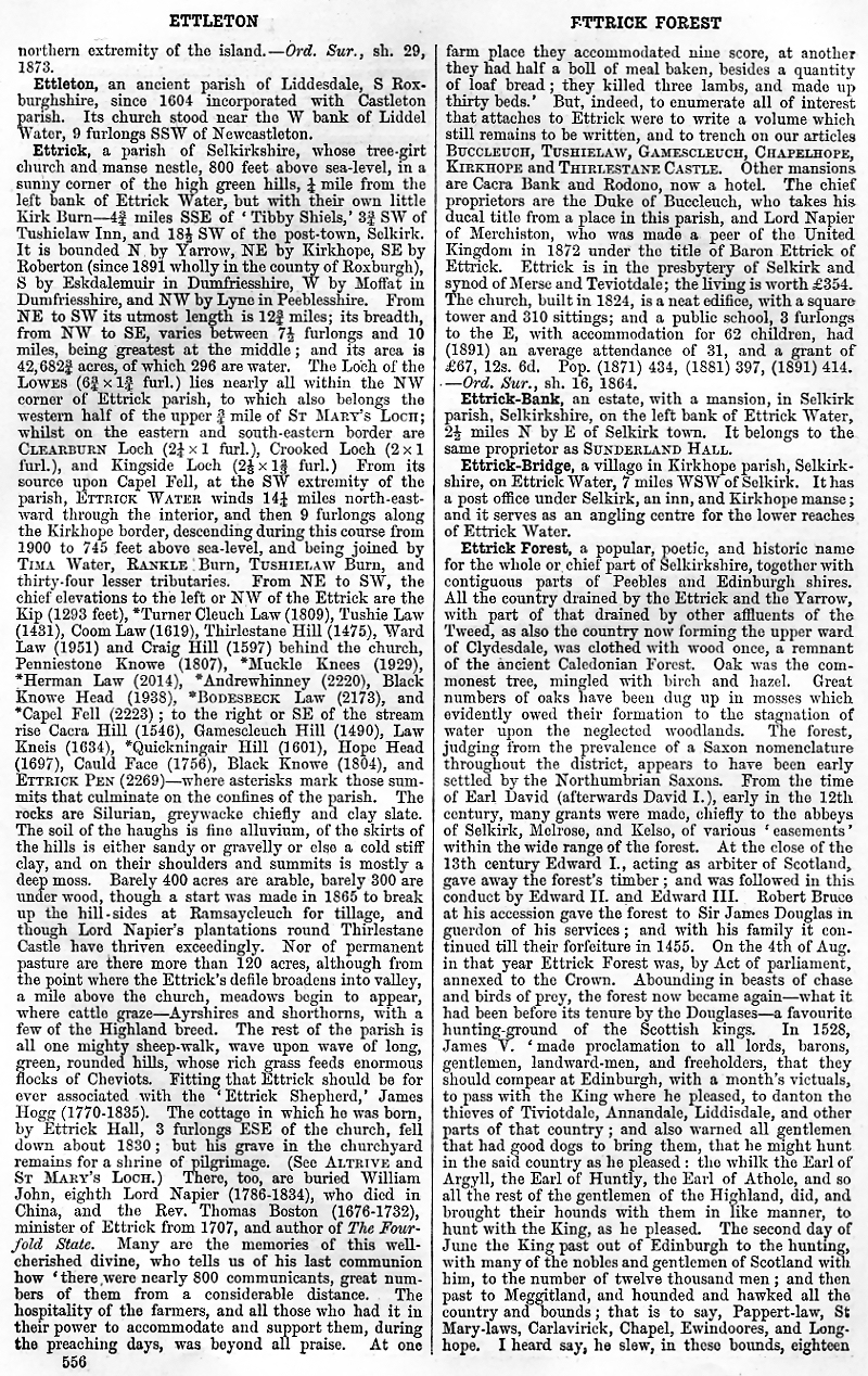 Ettleton, Ettrick, Ettrick-Bank, Ettrick-Bridge, Ettrick Forrest