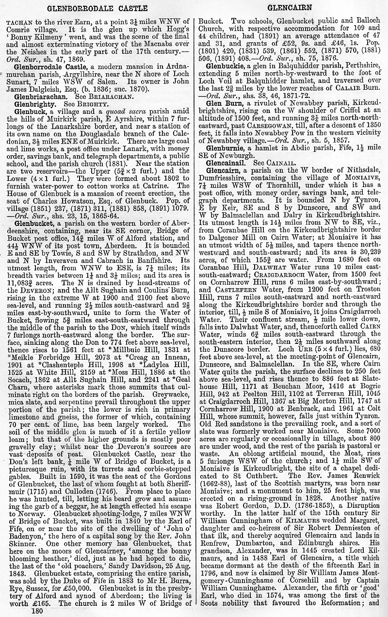 Glenborrodale Castle, Glenbriarachan, Glenbrighty, Glenbuck, Glenbucket, Glenbuckie, Glen Burn, Glenburnie, Glencainail, Glencairn