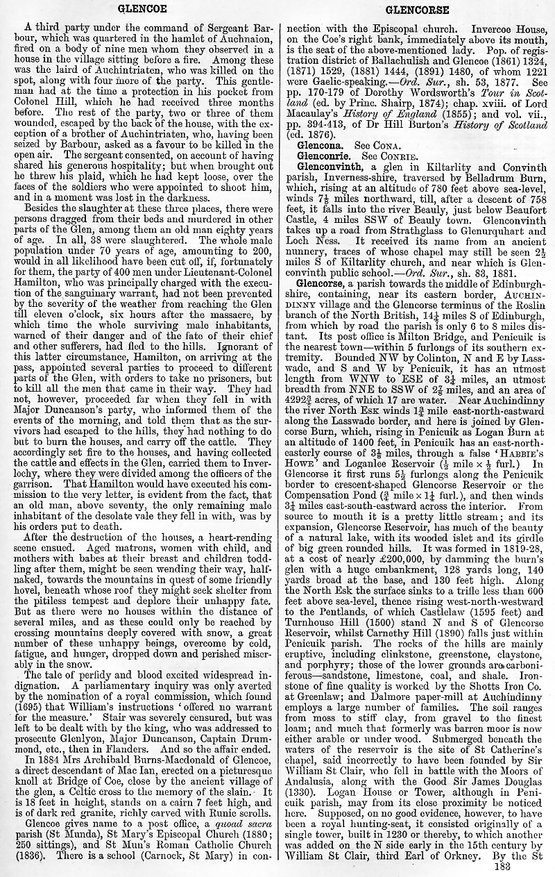Glencoe, Glencona, Glencourie, Glenconvinth, Glencorse