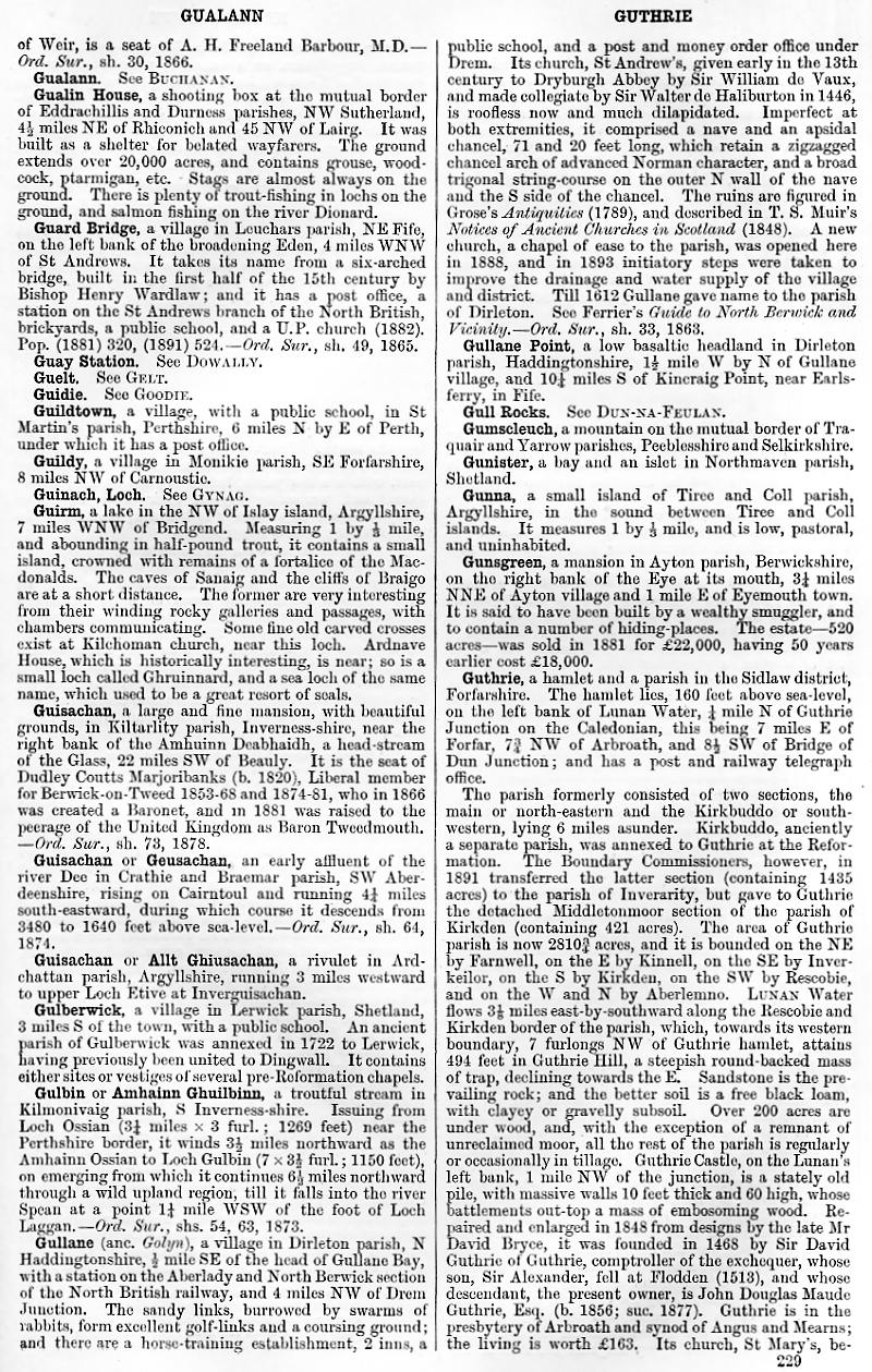 Guay Station, Guelt, Guidie, Guildtown, Guildy, Guinach Loch, Guirm,