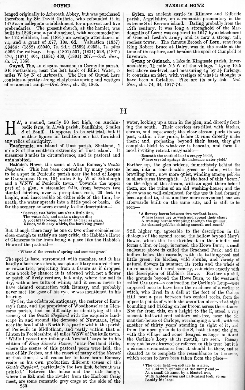 The Guynd, Gylen, Gynag or Guinach, Ha', Haafgrunie, Habbie's Howe