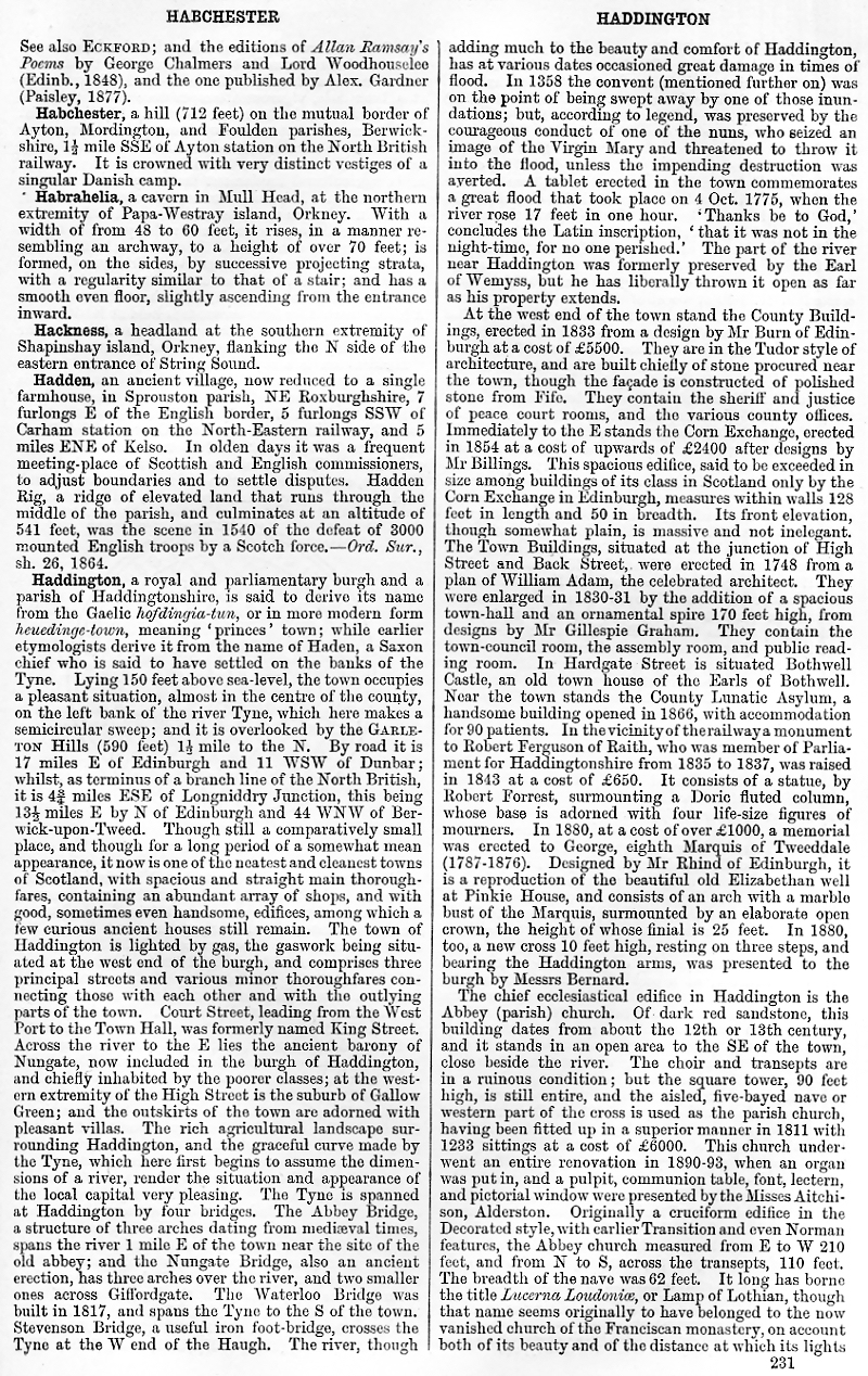 Habchester, Habrahelia, Hackness, Hadden, Haddington