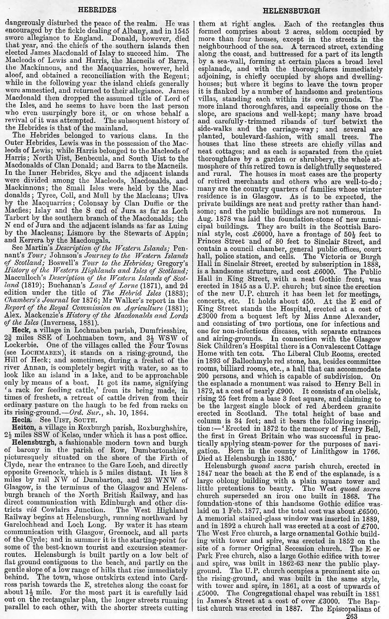 Hebrides or Western Islands, Heck, Hecla, Heiton, Helensburgh