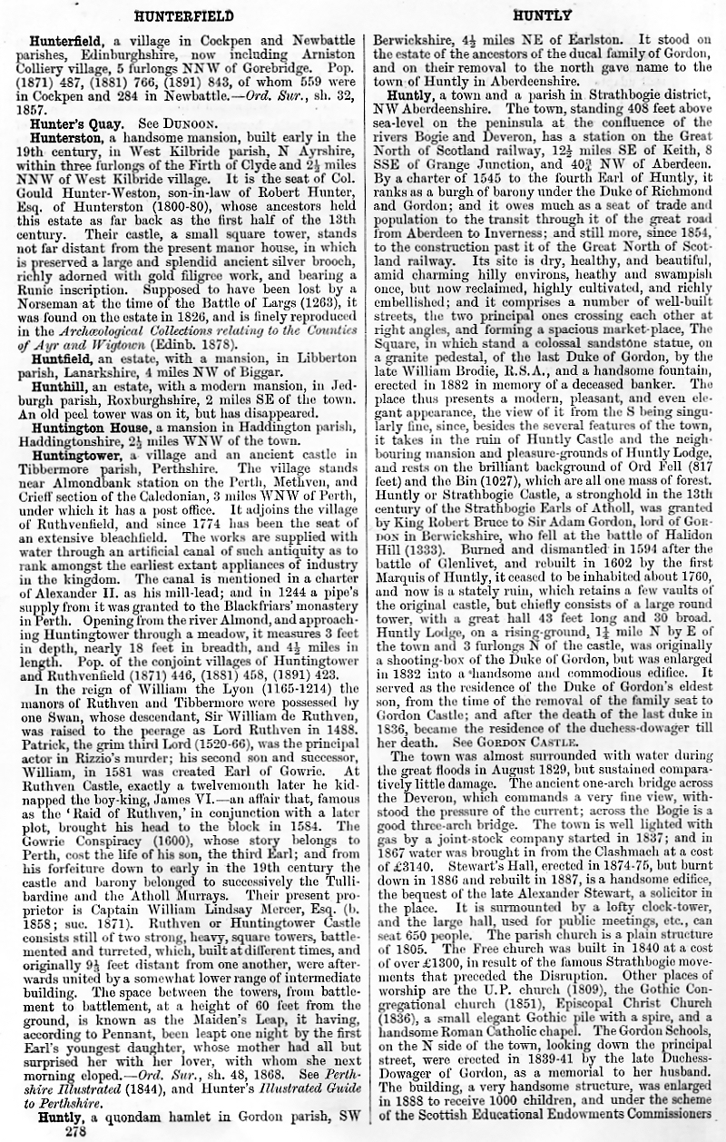 Hunterfield, Hunter's Quay, Hunterston, Huntfield, Hunthill, Huntington House, Huntingtower, Huntly