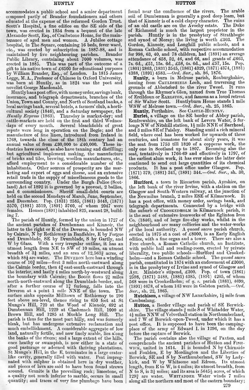 Huntly, Hurlet, Hurlford, Hutchison, Hutton