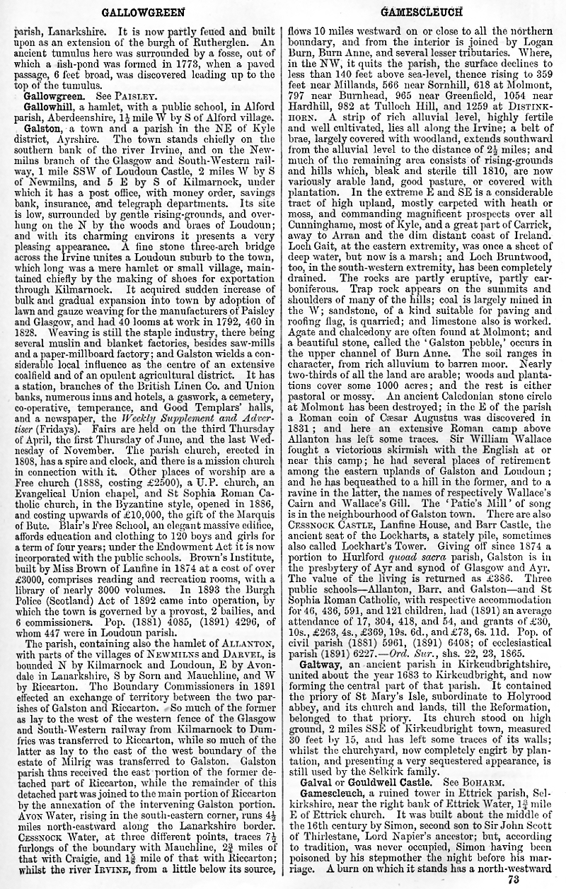 Gallowgreen, Gallowhill, Galston, Galtway, Galval or Gouldwell Castle, Gamescleuch