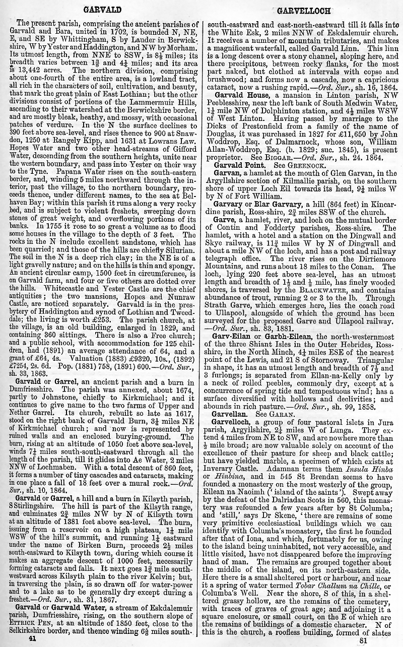 Garvald or Garrel, Garvald or Garrel, Garvald or Garwald Water, Garvald House, Garvald Point, Garvan, Garvary or Blar Garvary, Garve, Garv-Eilan or Garbh-Eilean, Garvellan, Garvelloch