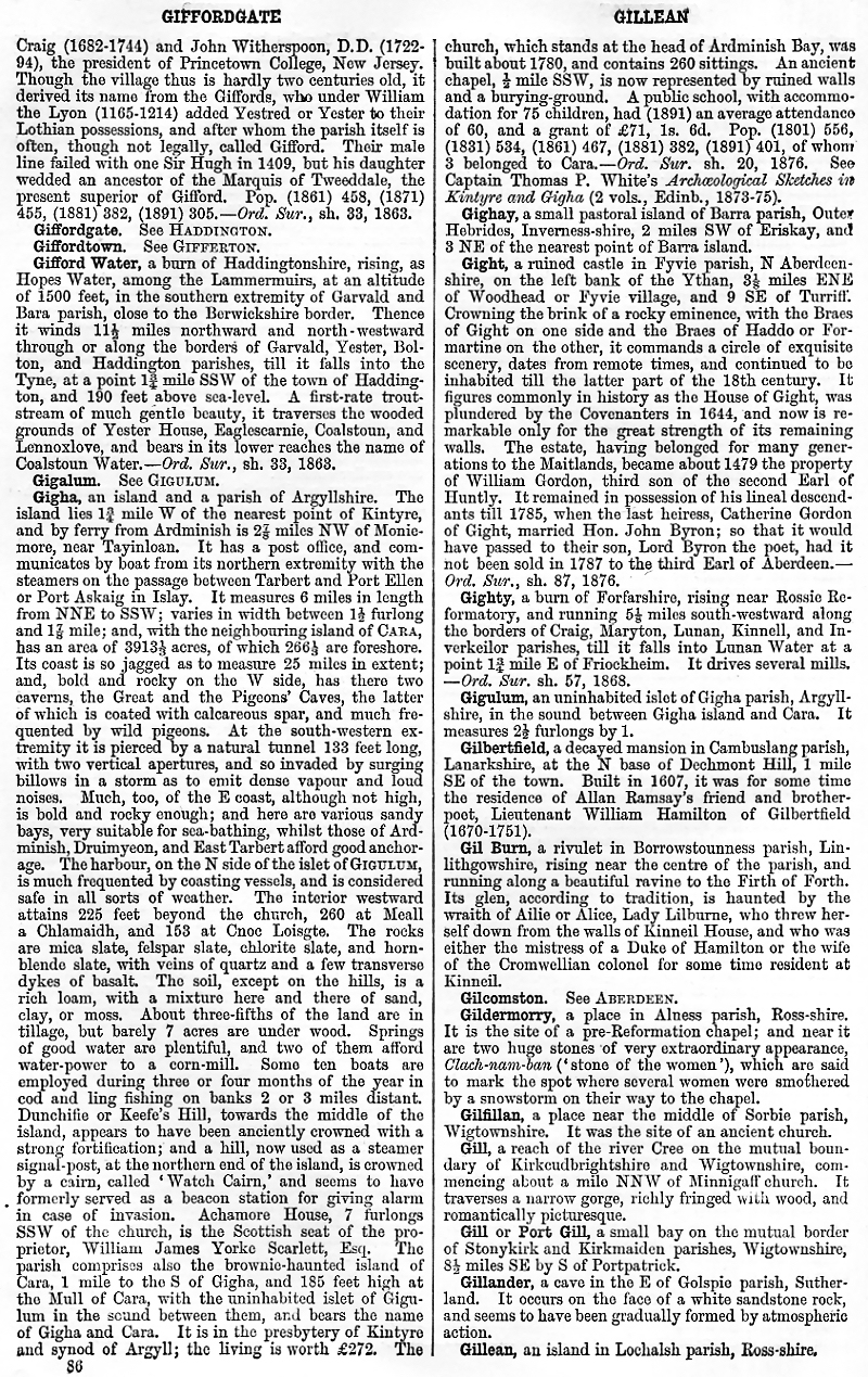 Gigalum, Gigha, Gighay, Gight, Gighty, Gigulum, Gilbertfield, Gil Burn,