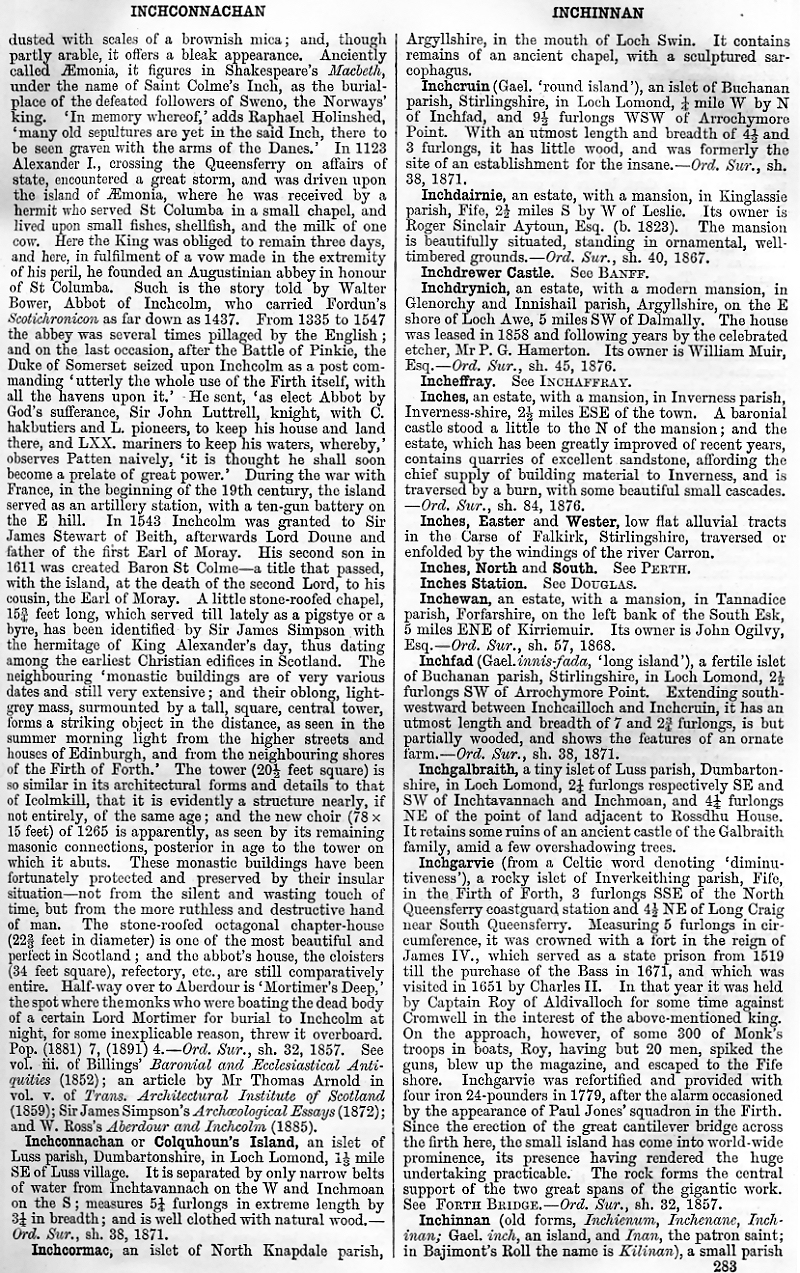 Inches, Inches Station, Inchewan, Inchfad, Inchgalbraith, Inchgarvie,