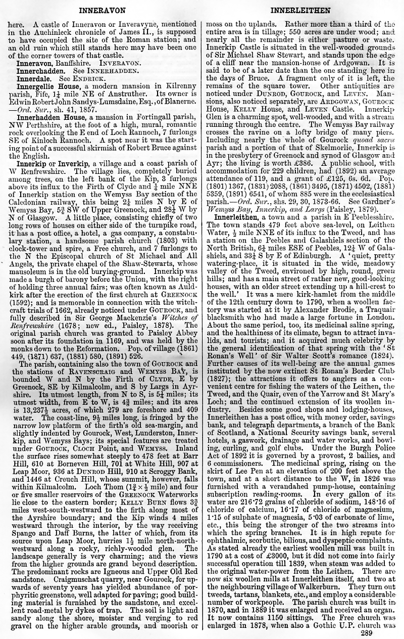 Inneravon, Innerchadden, Innerdale, Innergellie House, Innerhadden House, Innerkip or Inverkip, Innerleithen