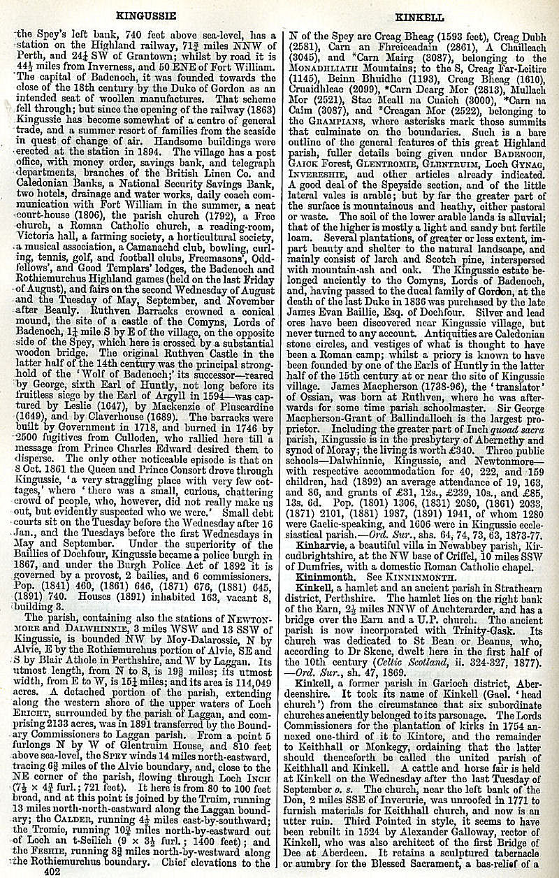 Kingussie, Kinharvie, Kininmonth, Kinkell