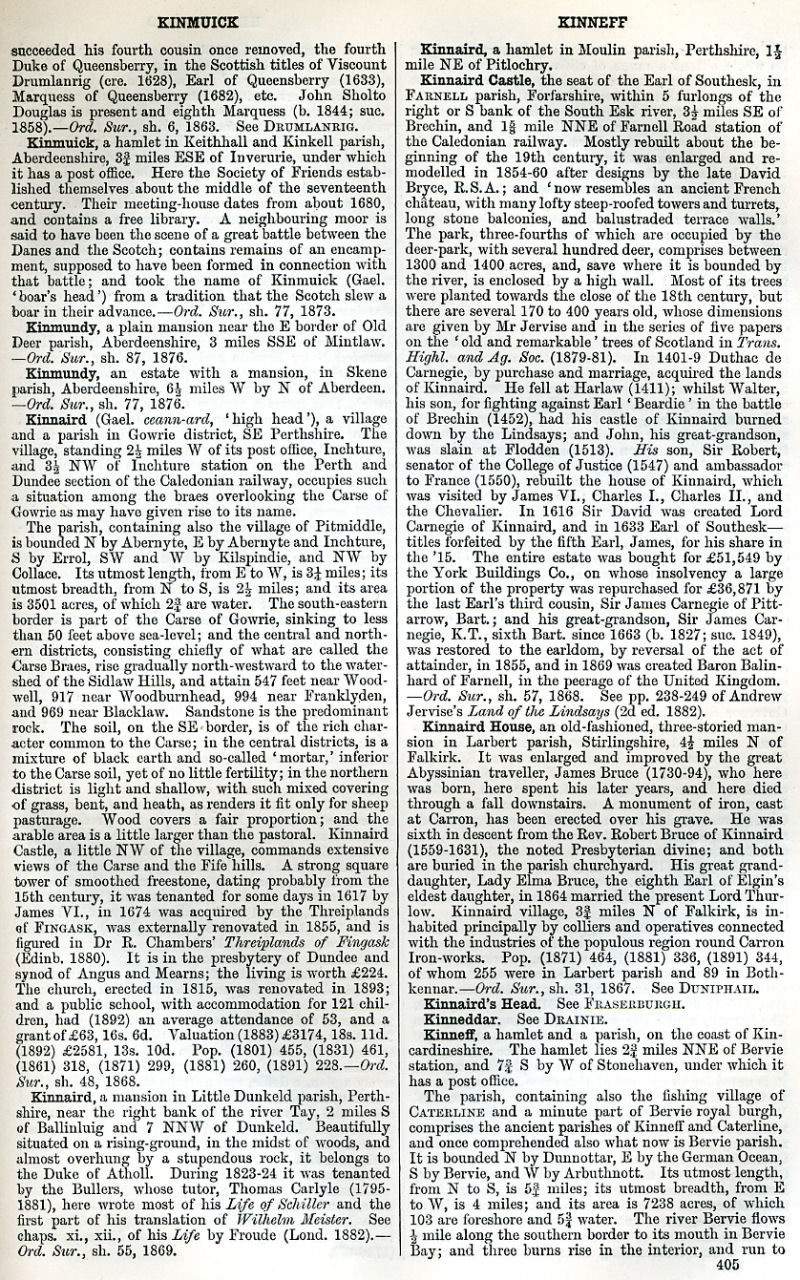 Kinmmuick, Kinmundy, Kinnaird, Kinnaird Castle, Kinnaird House, Kinnaird's Head, Kinneddar, Kinneff