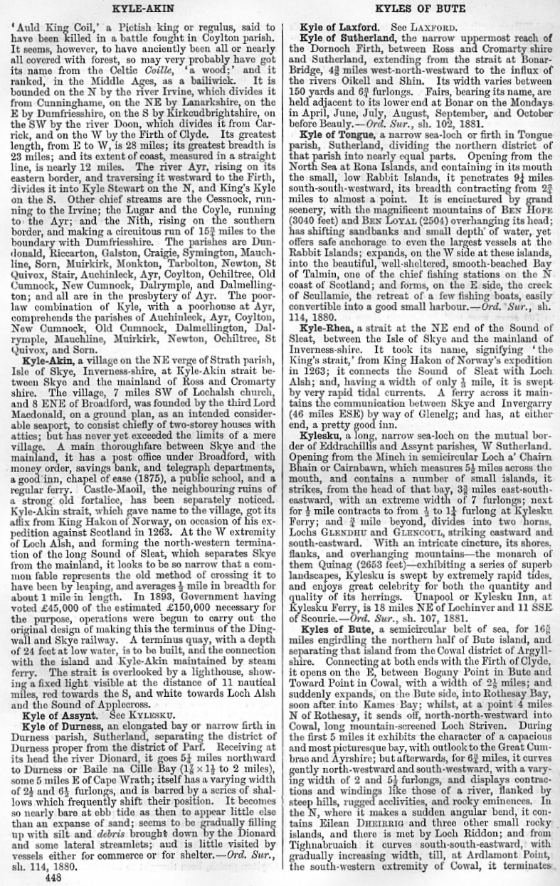 Kyle, Kyle-Akin, Kyle of Assynt, Kyle of