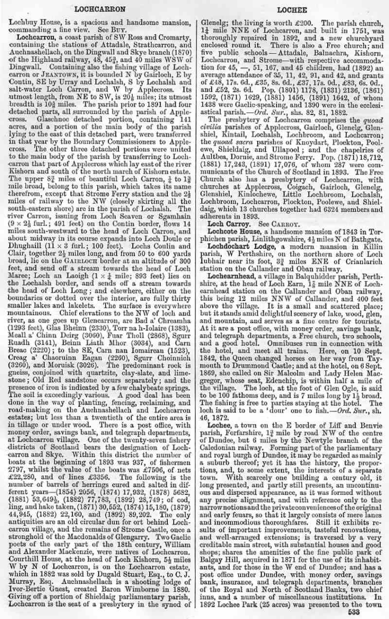 Lochcarron, Loch Carroy, Lochcote House, Lochdochart Lodge, Lochearnhead, Lochee
