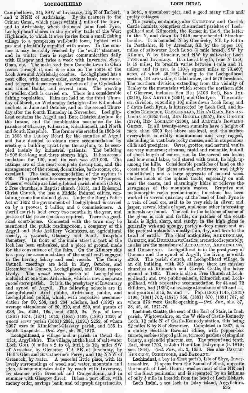 Lochgoilhead, Lochinch Castle, Lochindaal, Loch Indal