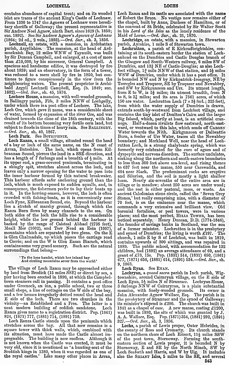 Lochnell, Lochore House, Loch Park, Loch Ranza, Lochridge, Lochrutton, Loch Ryan, Lochryan, Lochs