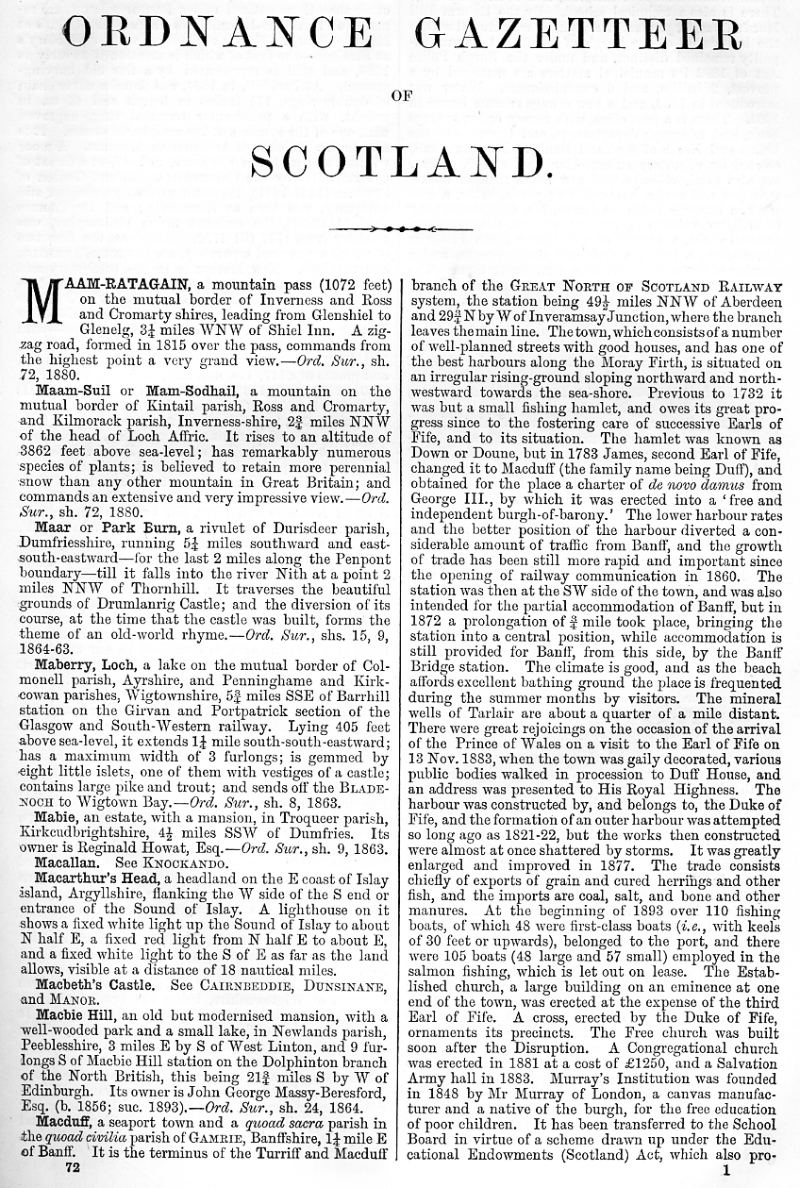 or Park Burn, Loch Maberry, Mabie, Macallan, Macarthur's Head, Macbeth's