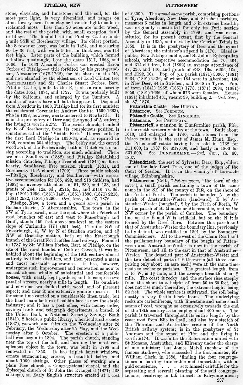 New Pitsligo, Pittairthie Castle, Pittarrow, Pitteadie Castle, Pittenane, Pittencrieff, Pittendriech, Pittenweem