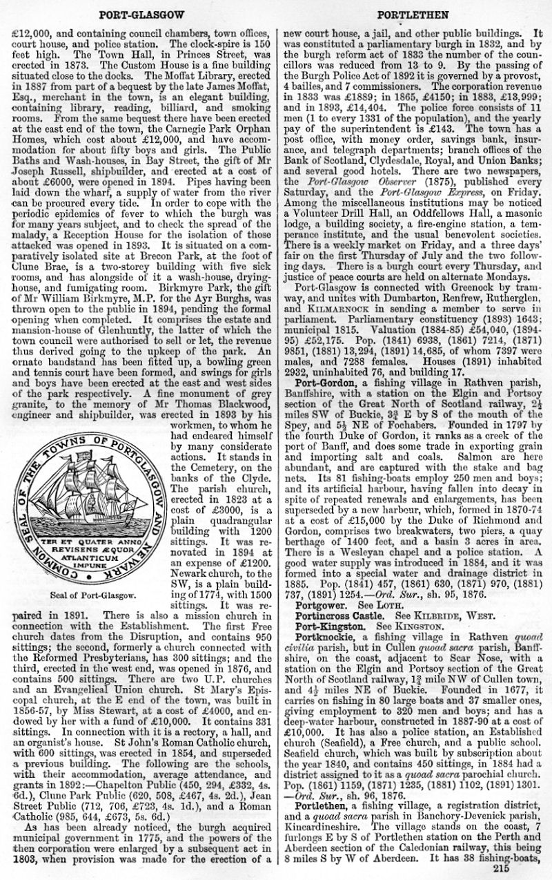 Port-Glasgow, Port-Gordon, Portgower, Portincross Castle, Port-Kingston, Portknockie, Portlethen