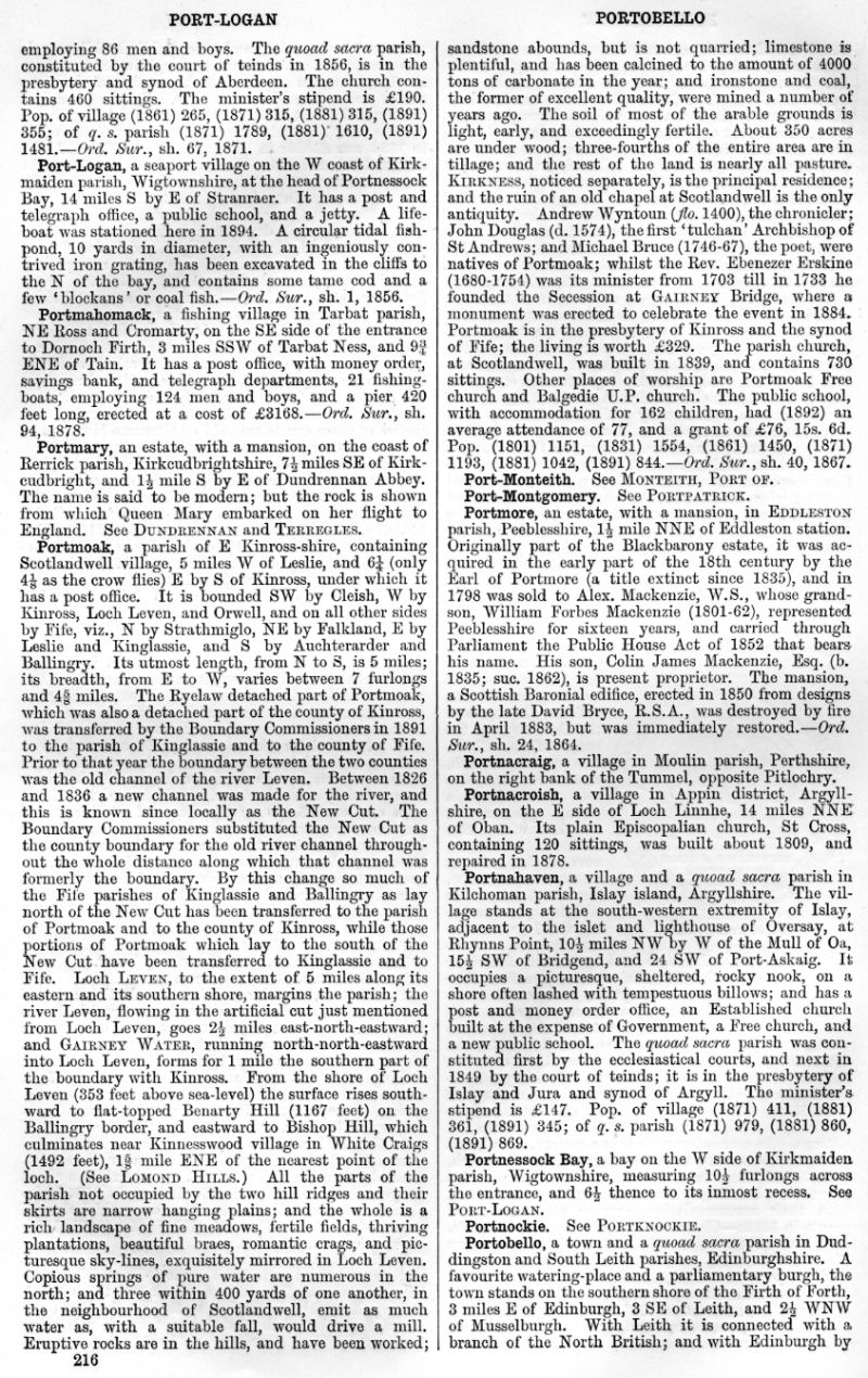 Port-Monteith, Port-Montgomery, Portmore, Portnacraig, Portnacroish,