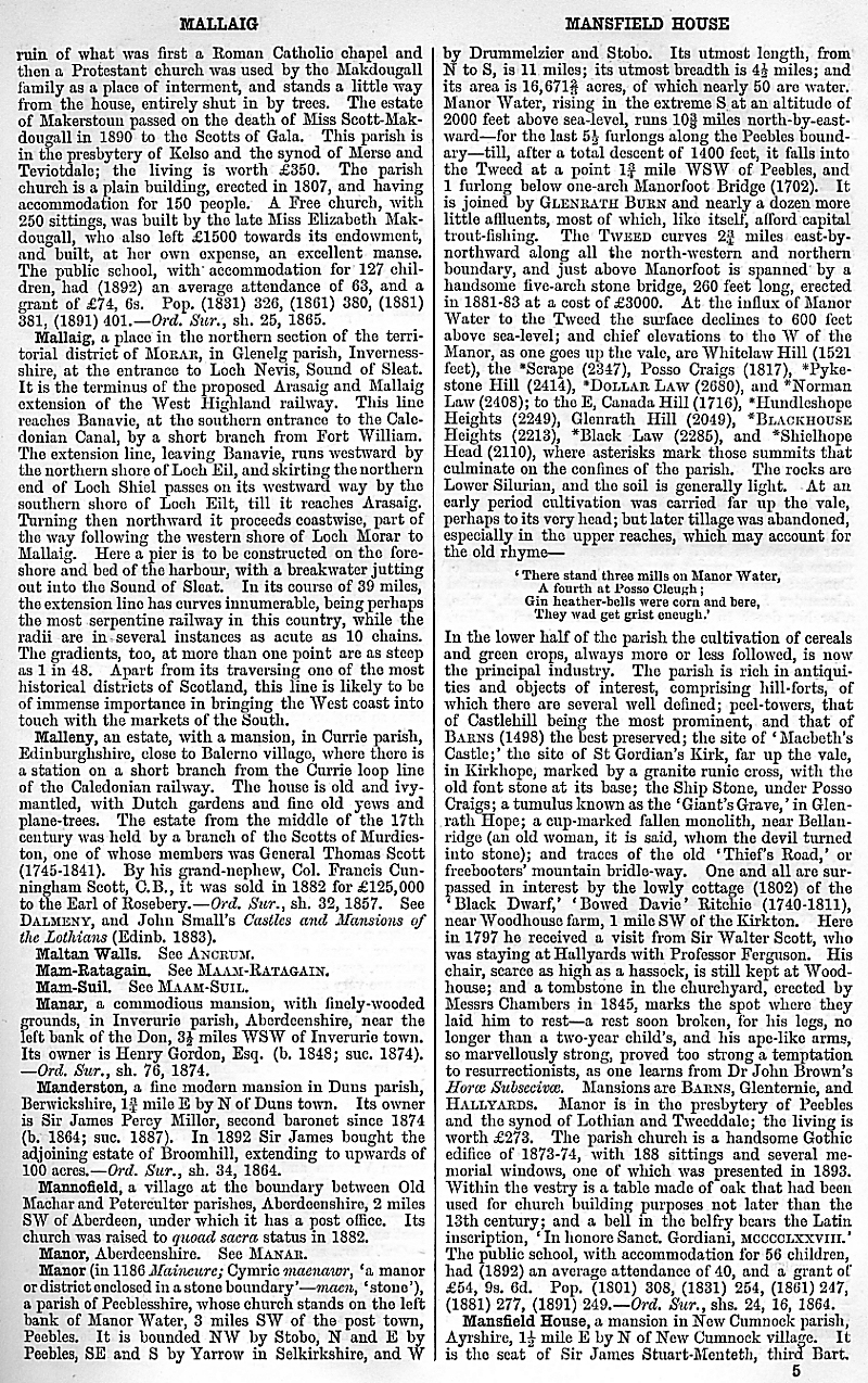 Mallaig, Malleny, Maltan Walls, Mam-Ratagain, Mam-Suil, Manar, Manderston, Mannofield, Manor, Mansfield House