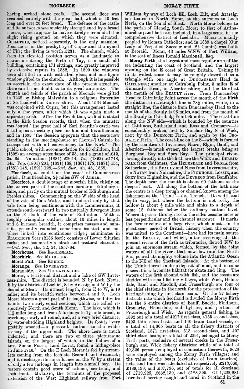 Moorbeck, Moorfoot, Moorhouse, Moorkirk, Moral Fell, Morange, Moranside, Morar, Moray Firth