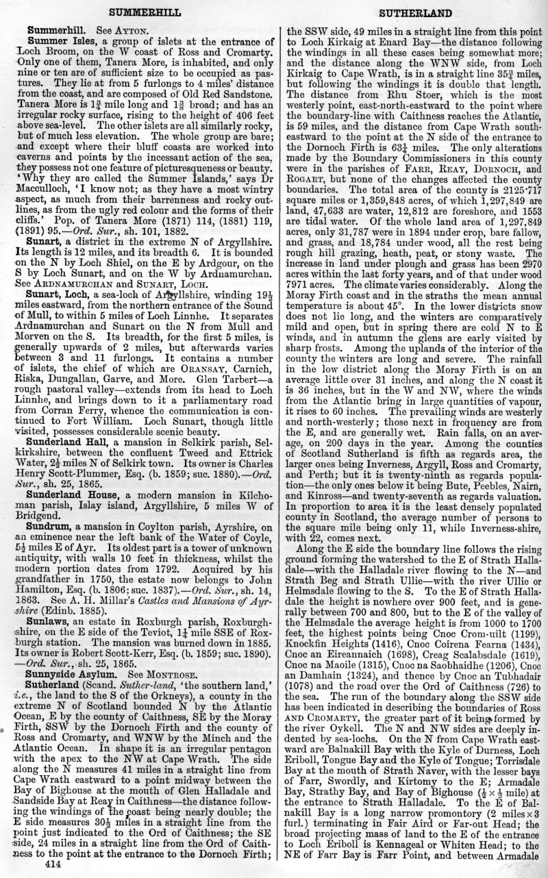 Summerhill, Summer Isles, Sunart, Loch Sunart, Sunderland Hall, Sunderland House, Sundrum, Sunlaws, Sunnyside Asylum, Sutherland