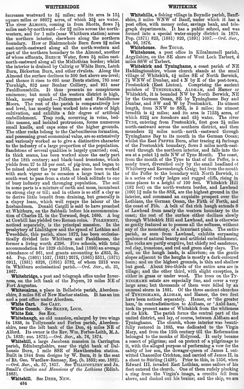 Coomb, White Esk, Whitehaugh, Whitehill, Whitehills, Whitehouse, Whitekirk