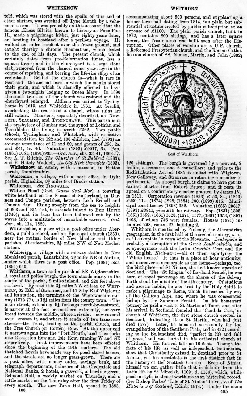 Whiteknow, Whitemire, Whiteness, Whiten Head, Whiterashes, Whiterigg, Whithorn