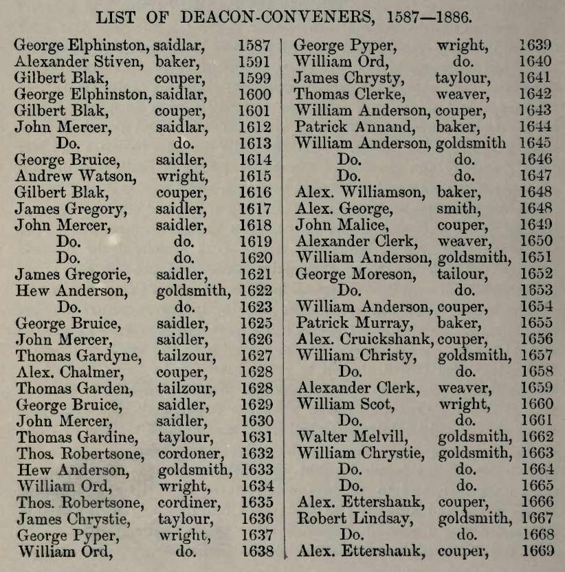 burgesses. The first mention of a deacon-convener in Aberdeen occurs in