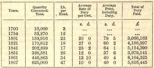 consumed in Britain in the year 1700 was only 10,000 tons, while in 1868 it