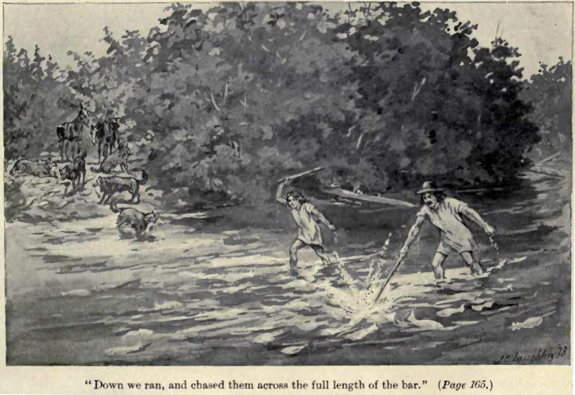 and whistling the dogs after us, we galloped on to the creek. This I found