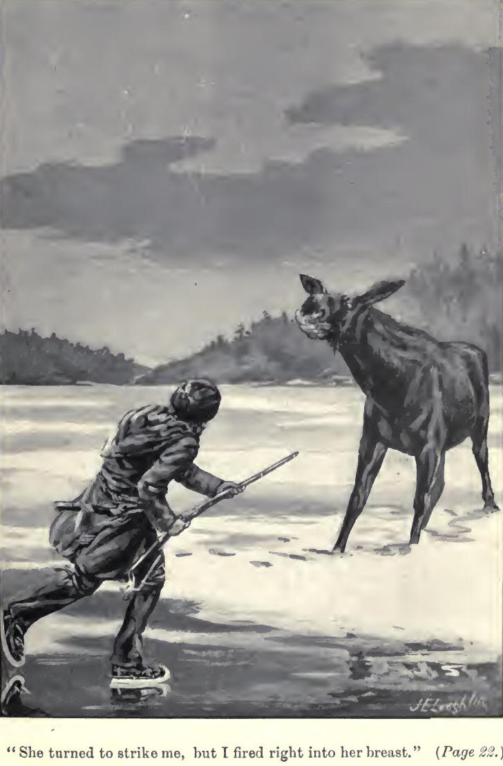 very short time I was upon the big moose, and suddenly she turned to strike