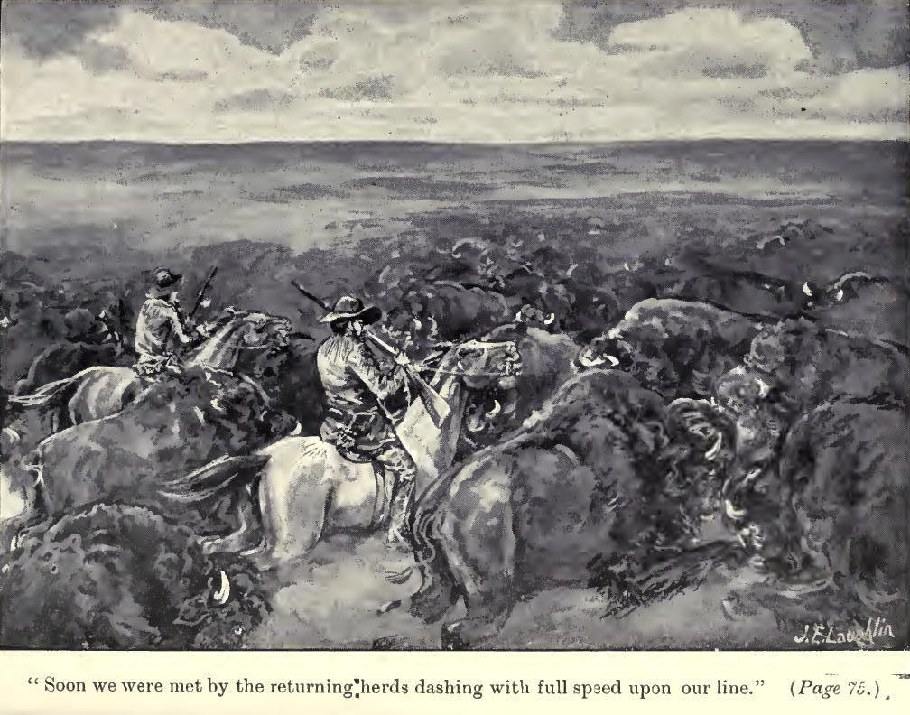 While this dense smoke-cloud rested upon the land a big bunch of buffalo