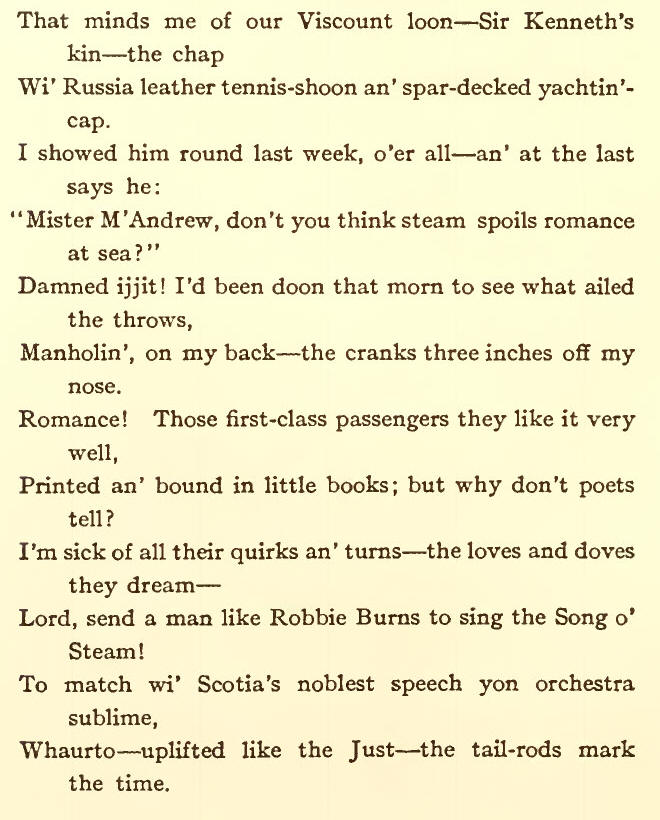 Kipling fortunately has it pure from his mother. McAndrew is homeward bound