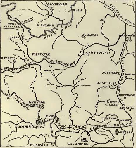Llangollen. One branch passes northward, near the towns of Ellesmere,