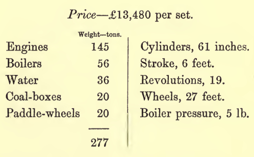 to offer for one or two sets of side-lever engines of 280 N.H.P.