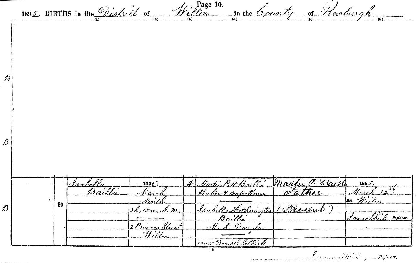 1885 in Selkirk, Scotland. Isabella (Junior) had three