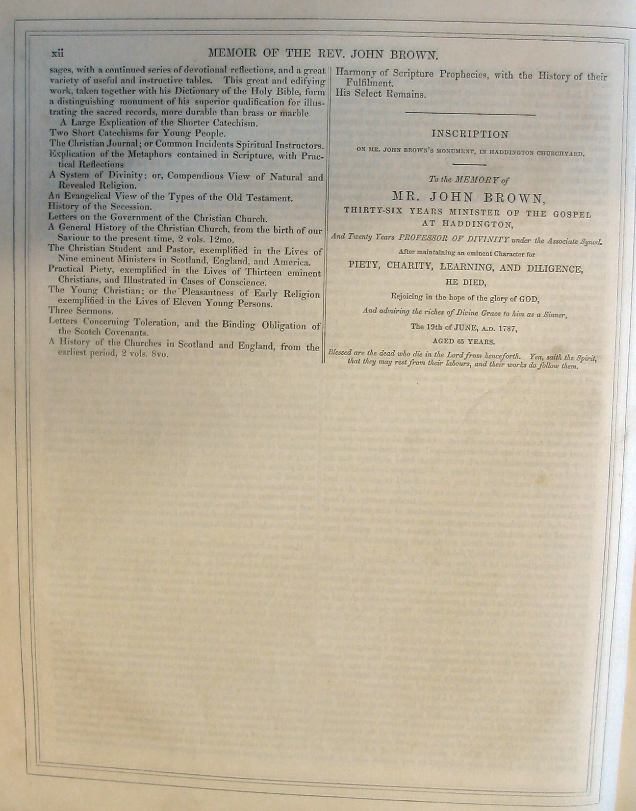 their respect to the memory of the Rev. John Brown, their late Professor,