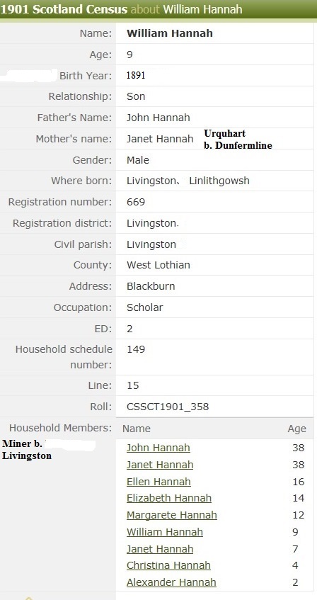 Livingston, West Lothian, Scotland in 1891 and reared in Blackburn, West