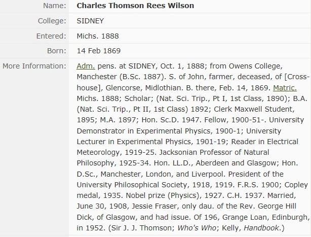at the Cavendish laboratory, with the aim of making clouds. He found that if