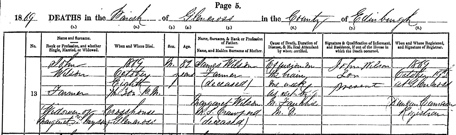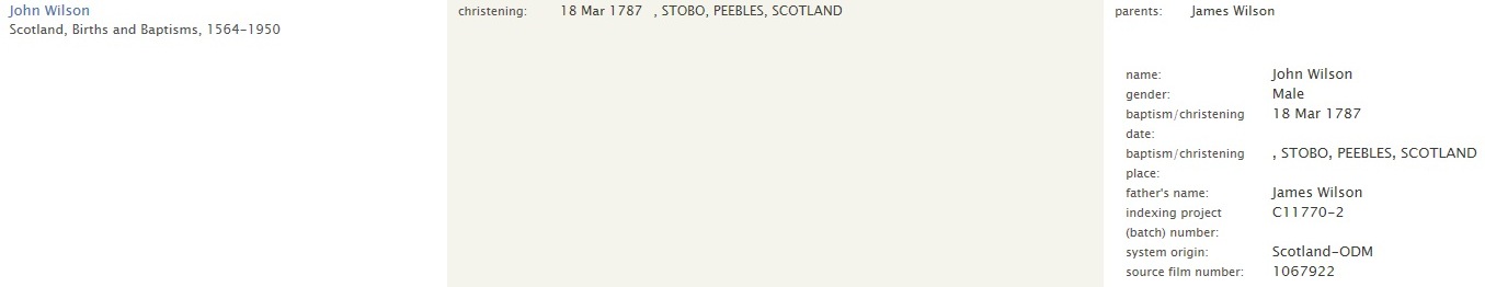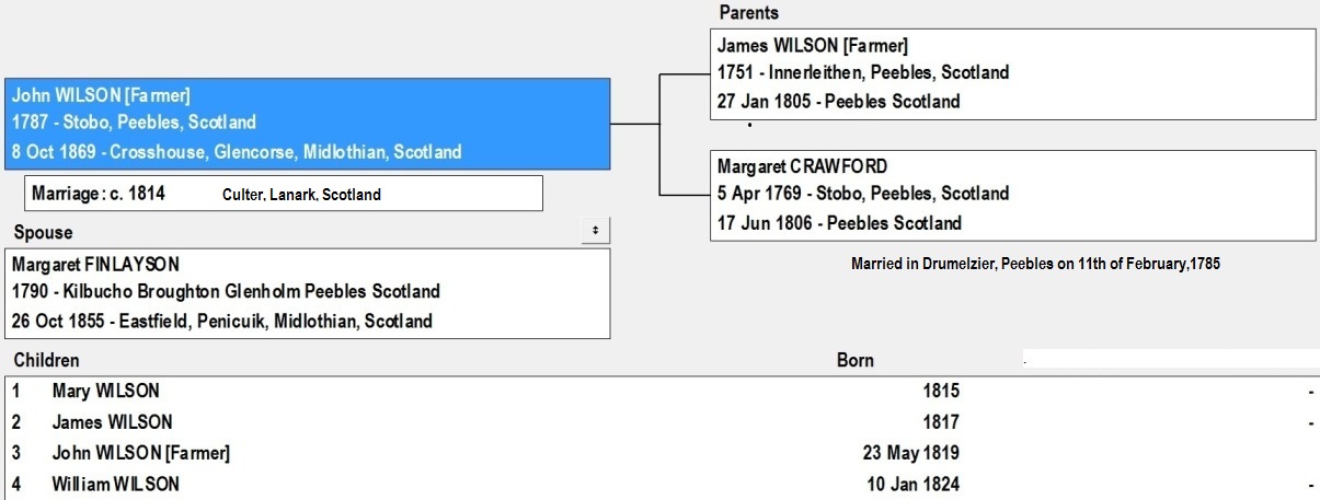 see John, b.1819, living with parents John Wilson and Margaret Finlayson et