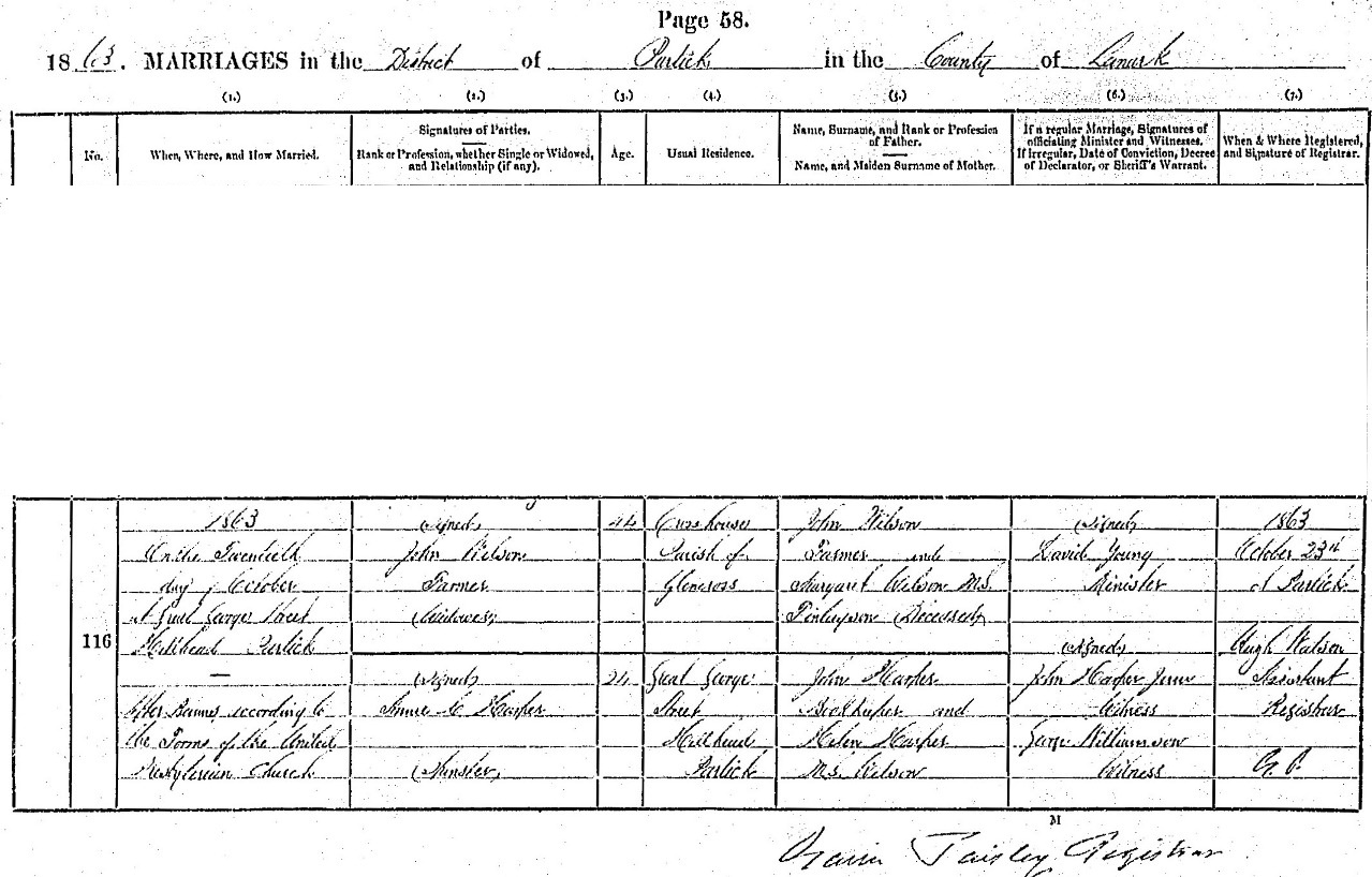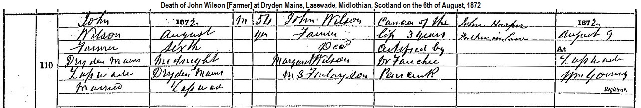 the 1871 Census, but in fact John Wilson Jnr. is fighting a cancerous lip.